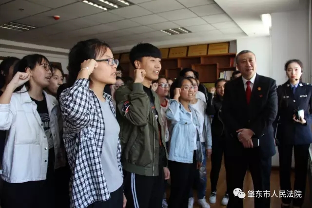 上午8时30分,参加“公众开放日”的学生们在党组副书记、副院长闫立恒的引领下,先后参观了审判法庭、诉讼服务中心、集控中心、法警大队文化长廊、干警体能训练中心、数字图书馆、党建活动室、科技法庭等场所,同学们参观党建活动室时在入党誓词前举起右手、庄严的进行了宣誓。随后,少年审判庭庭长孙晓秋法官深入浅出的为大家上了一堂法制教育课,孙庭长结合近年来青少年涉及的伤害、盗窃、校园暴力等案件进行了剖析,引导同学们做遵纪守法的好公民、好学生。法制课结束后,参加公众开放日的师生旁听了由我院党组成员、副院长王研主审的一起刑事案件的庭审,通过庭审,学生们不仅学到了刑事审判流程相关的法律常识,而且真正感受到了国家法律的权威和尊严,认识到犯罪行为给社会带来的严重危害,懂得了只有知法、懂法才能更好地守法、用法,只有严格自律,远离犯罪,才能健康成长。