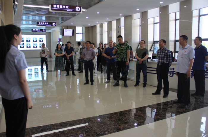 在肇东法院党组成员、副院长汤立波的引领下,分别参观了诉讼服务中心、诉调对接中心,并详细参观了诉调对接中心设立的诉调对接室、立案法官诉讼辅导室、法官调解室、人民调解员驻院调解室、社区调委会调解室、特邀调解室、律师调解室、司法确认室、速裁审判庭等九个专门用于诉调对接的工作室。