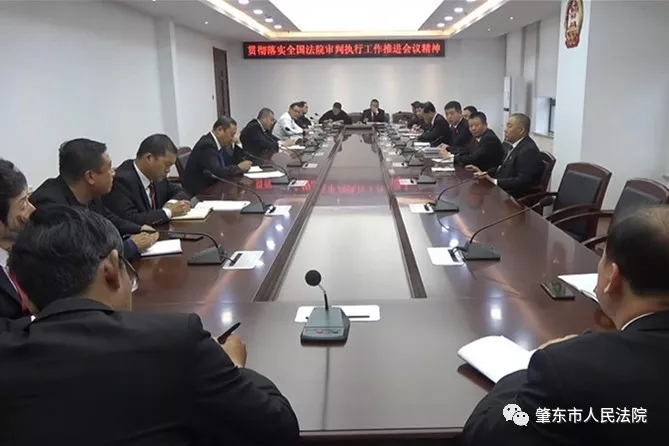 10月15日上午,肇东法院组织收看了全国法院审判执行工作推进会,院党组成员、各部门负责人,执行局、审管办全体人员在视频会议室集中收听收看了视频会议。视频会议结束后,肇东法院迅速在八楼会议室召开党组扩大会议,贯彻落实全国法院审判执行工作推进会议精神,进一步提高审判执行质效,院党组成员及各部门负责人参加会议。