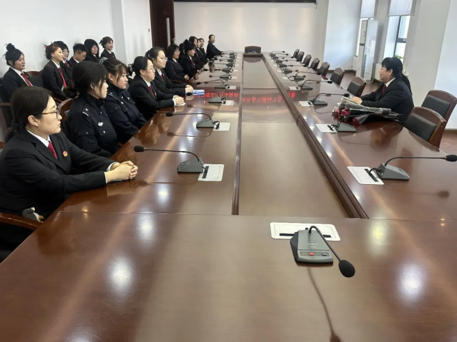 春风送暖,芳华正好。在第116个“三八”国际劳动妇女节来临之际,肇东法院召开女干警座谈会,院领导与女干警代表欢聚一堂、共话初心、同庆佳节。院党组成员周丽华出席会议并讲话,为每一位女干警送上鲜花与节日祝福,向奋战在司法一线的“铿锵玫瑰”致以诚挚敬意。
